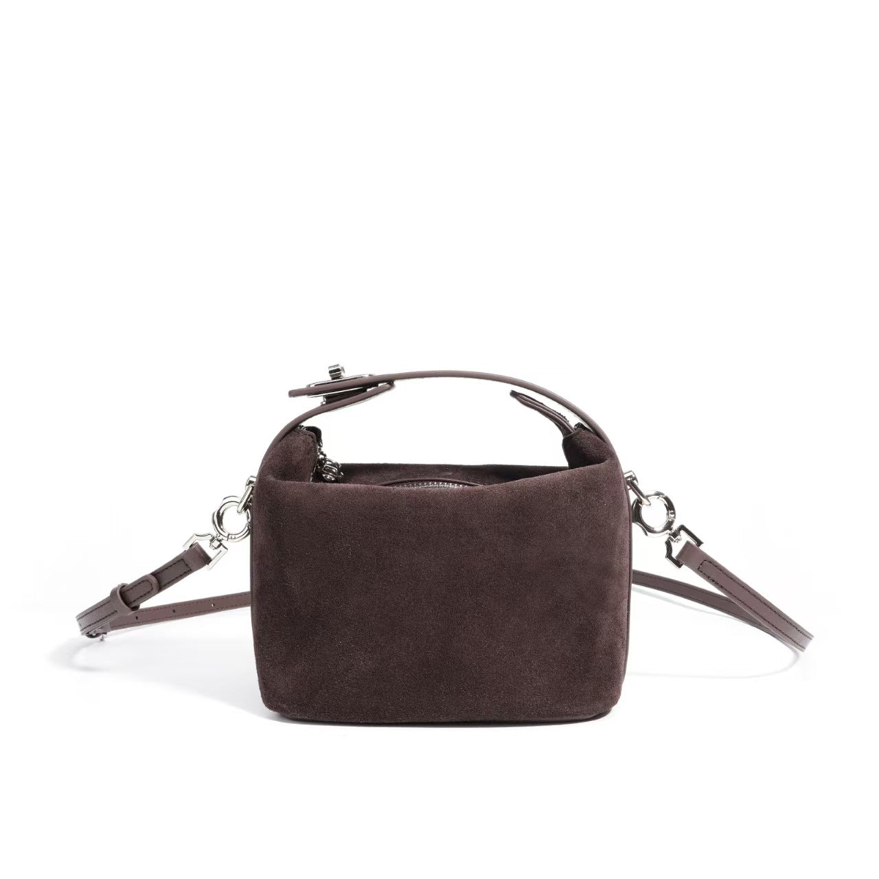 A compact suede masterpiece, this 17 × 15 × 11 cm bag exudes understated luxury with its velvety texture, refined silhouette, and timeless elegance—perfect for carrying essentials in sophisticated style.