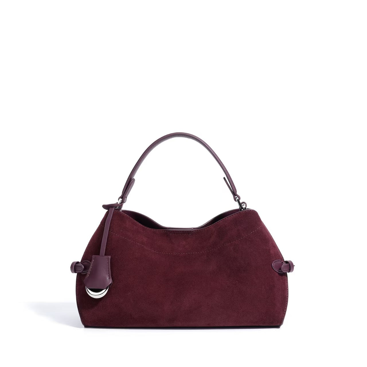 Indulge in understated elegance with this genuine suede bag, meticulously crafted in a refined silhouette measuring 27 x 16 x 9 cm.